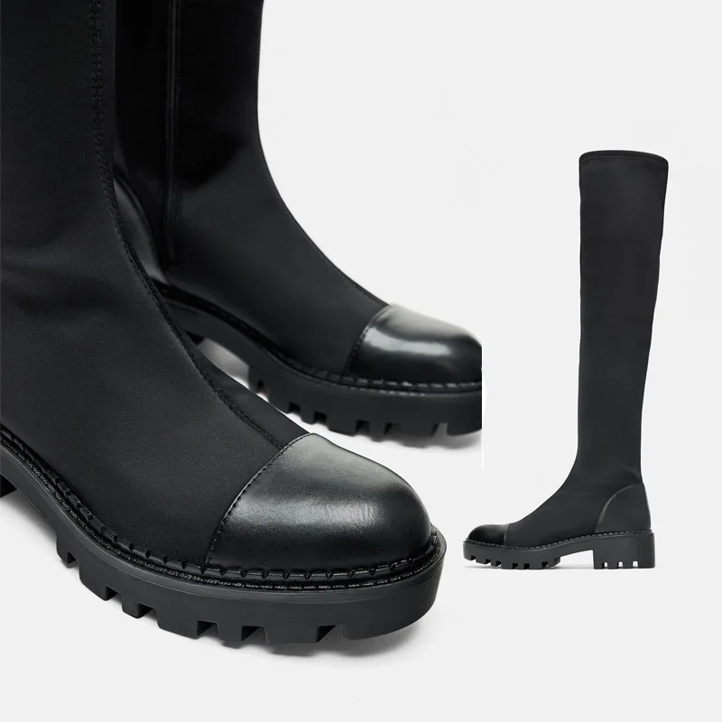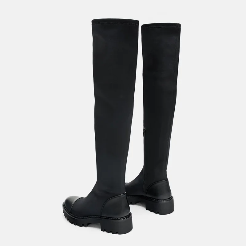 Product Name: Sapatos Femininos Botas 2020 Goth Inverno Senhoras Designer Sapatos Moda Gótico Apartamentos Sobre O Joelho Botas Altas Coxa Botas De Inverno